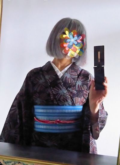 赤系の帯は暑苦しく見えたのでクリアな水色で。