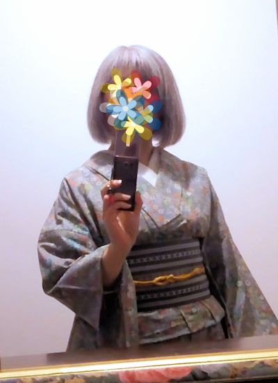 昨日はグレーの小花の薄手ウールに夏向けの薄い半幅を合わせました。