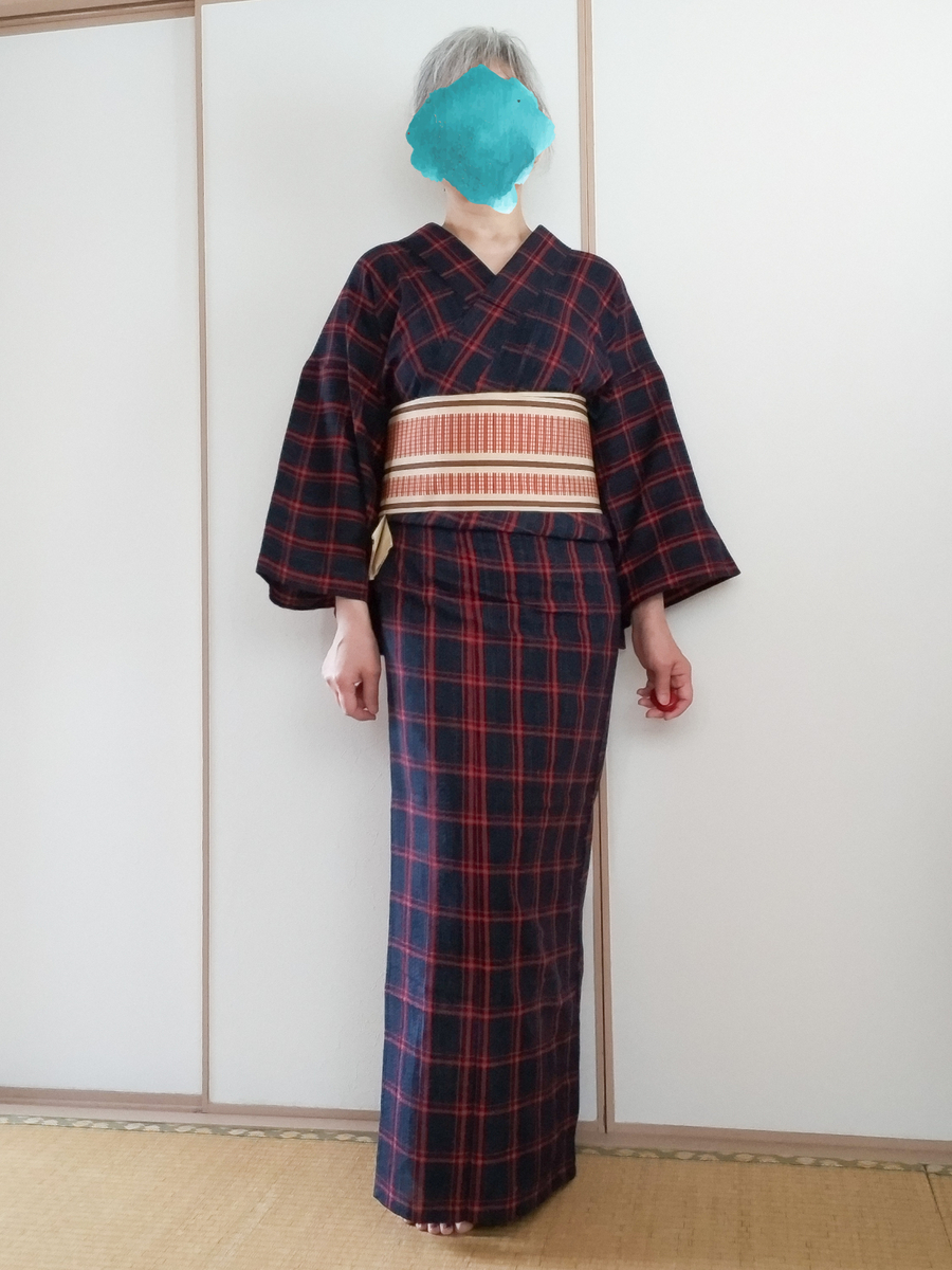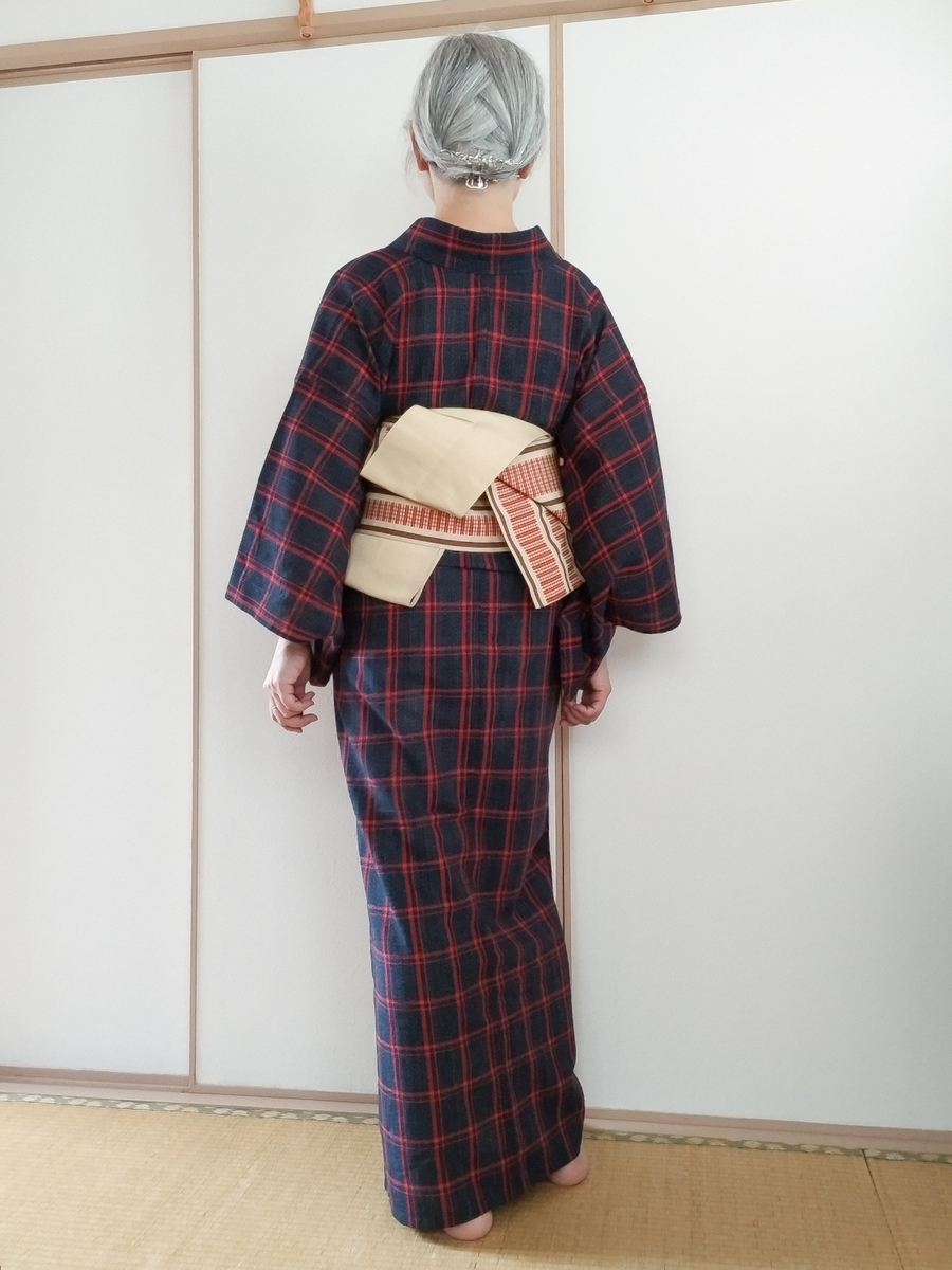 今日は片流しの成り行きアレンジ。垂れを全部引き抜かずに左右対称にすると差し込んだ側(裏の無地が出ている方)が余るので、結び目の上に余りをなんとなく垂らしてみました。成り行きも思いつきでこうなりましたが、反り腰で出がちな胴帯の皺もカバー出来て満足。