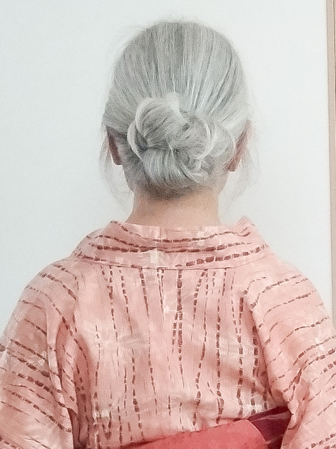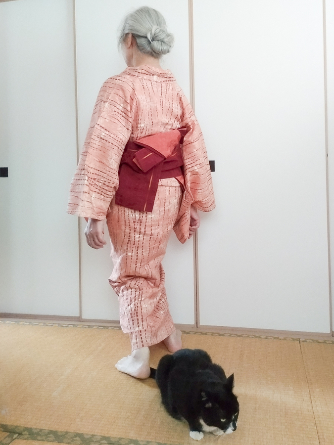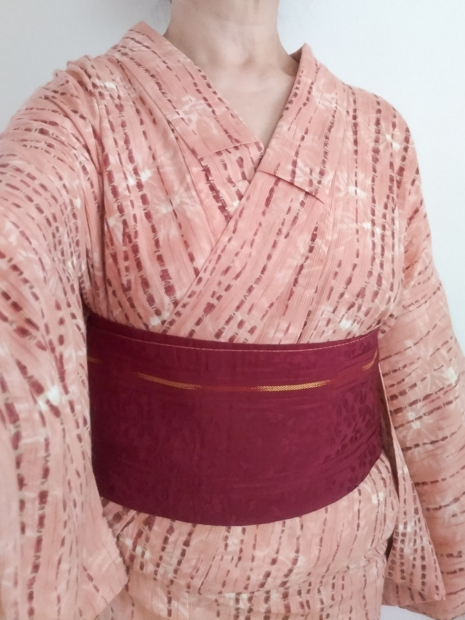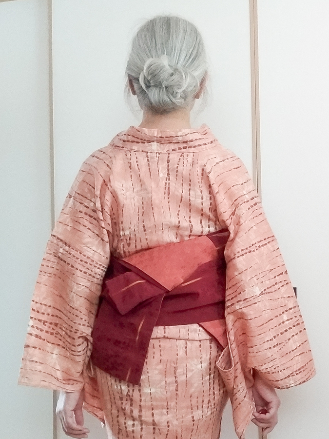 - 長着を緩く着たので帯も緩く(帯だけきついと変な皺が目立つ)